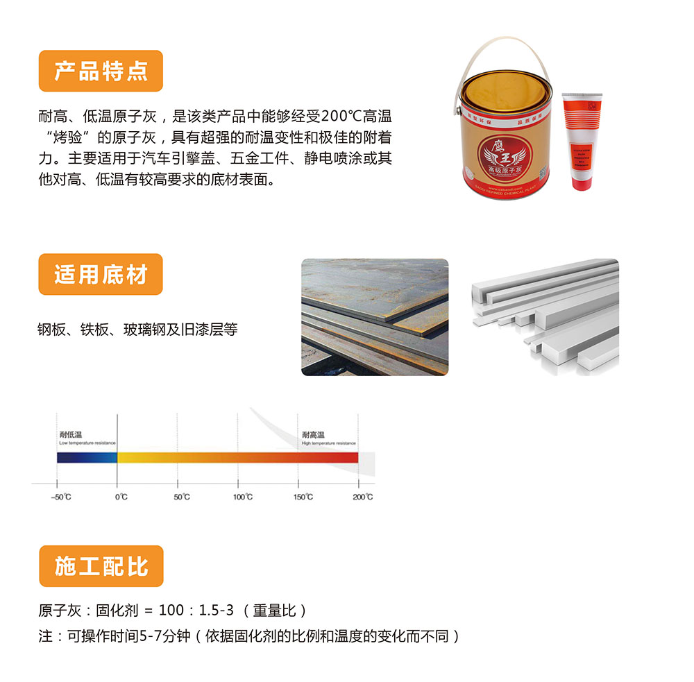 长兴宝迪环保科技有限公司生产的耐高、低温原子灰能够经受200℃高温考验的原子灰具有超强的耐温变性和很好的附着力。